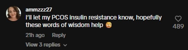‘I’ll let my PCOS insulin resistance know, hopefully these words of wisdom help,’ another added.