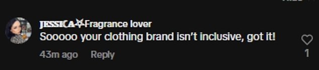 A third wrote: ‘Sooooo your clothing brand isn’t inclusive, got it!’