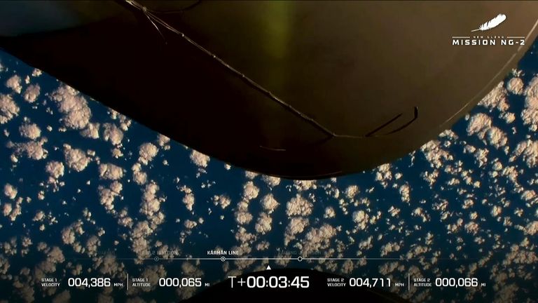 This was Blue Origin’s third attempt to launch, with the first on Sunday scrapped because of clouds and the threat of lightning strikes.
