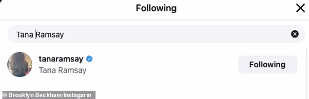 Curiously, the cooking influencer still follows Gordon Ramsay's wife Tana, daughter Tilly and young son Oscar