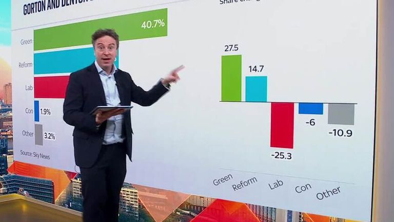 Green Party candidate Hannah Spencer won the by-election with 14,980 votes – a majority of 4,402 – in the early hours of Friday morning, pushing Labour into third place in an area they have not lost since 1931.