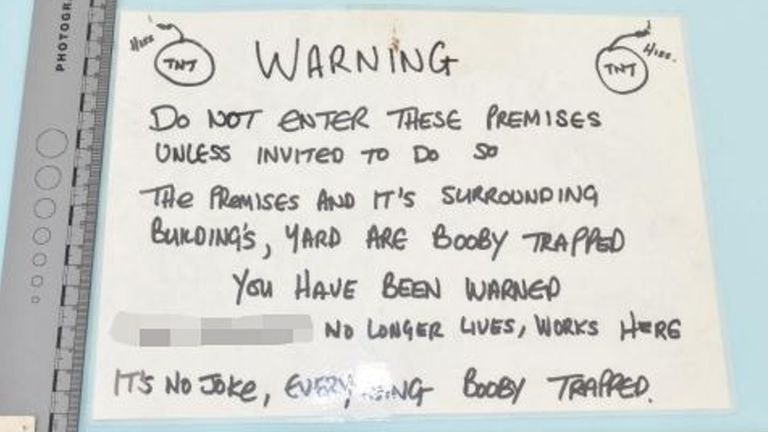 Booby trap signs found by police. Pics: Yorkshire and Humber Regional Organised Crime Unit/PA