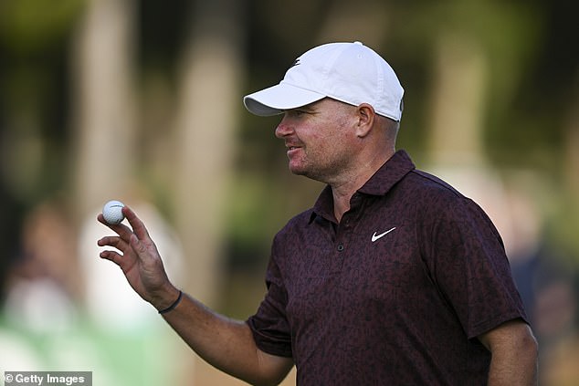 ‘I’m glad it’s over with – put it that way,’ he said, adding that he couldn’t even feel his arms on the tee box at the 18th, ultimately going down for a bogey on the last.