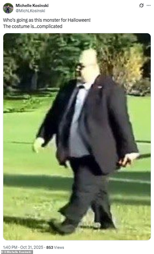 ‘Who’s going as this monster for Halloween!’ she wrote in the post. ‘The costume is…complicated.’