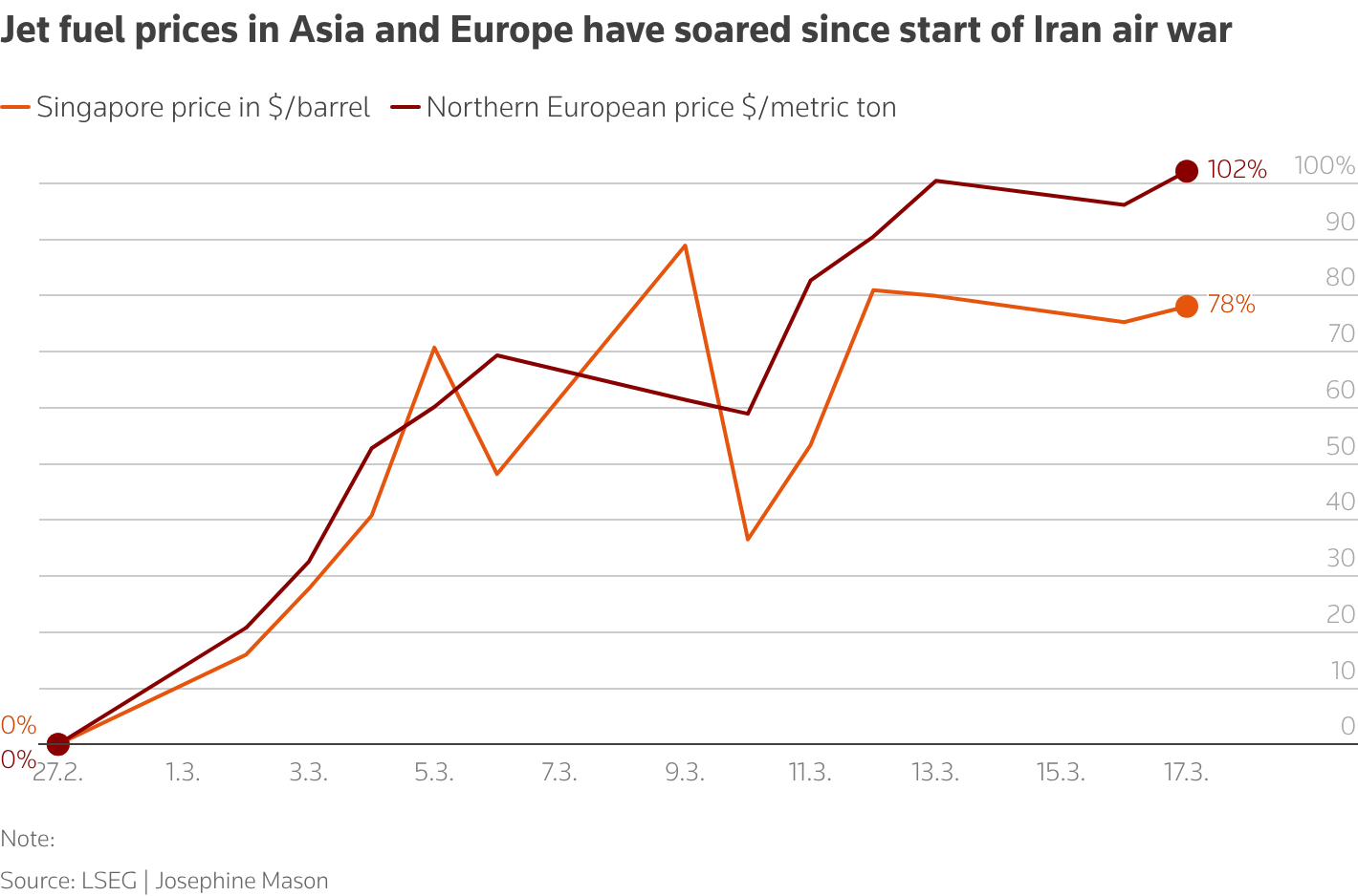 Jet fuel prices have emerged as a major challenge, pushing up operating costs, with European prices doubling and Asian prices up almost 80% since the start of US and Israeli strikes on Iran in late February.