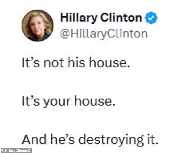 ‘It’s not his house. It’s your house. And he’s destroying it,’ the ex-Senator wrote on X, including a screenshot of a Washington Post story about the remodel.