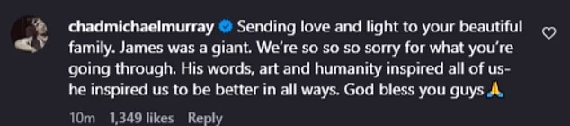 Murray penned, ‘Sending love and light to your beautiful family. James was a giant. We’re so so so sorry for what you’re going through.