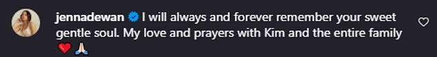 Jenna Dewan commented, ‘I will always and forever remember your sweet gentle soul. My love and prayers with Kim and the entire family.’