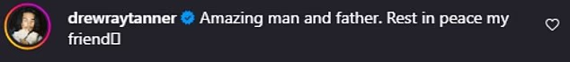 Riverdale alum Drew Ray Tanner shared, ‘Amazing man and father. Rest in peace my friend.’