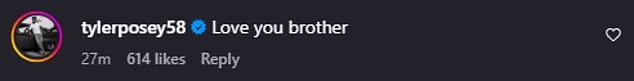 Teen Wolf alum Tyler Posey said, ‘Love you brother.’