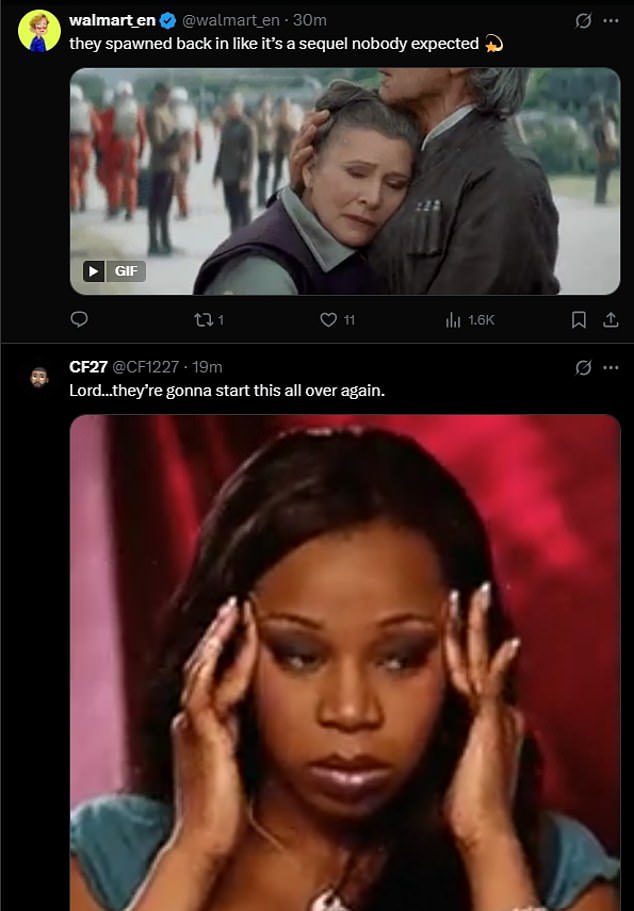 One fan posted a .GIF of a stressed out Tiffany Pollard rubbing the temples of her head and writing on X, ‘Lord…they’re gonna start this all over again.’