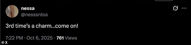 One fan joked on X, ‘3rd time’s a charm…come on!’