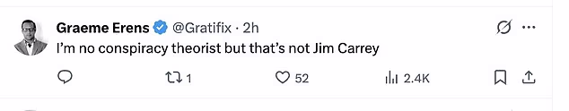 ‘I’m no conspiracy theorist, but that’s not Jim Carrey,’ commented another.