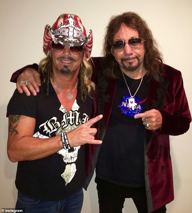 ‘Ace, my brother, I surely cannot thank you enough for the years of great music, the many festivals we’ve done together and your lead guitar on Nothing But A Good Time,’ Michaels said in reference to the 1988 Poison party anthem.