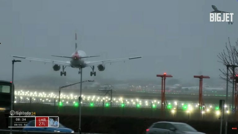 Some flights were cancelled on Friday because of the storm, with footage of a passenger plane swaying in strong winds as it came into land at Heathrow Airport.