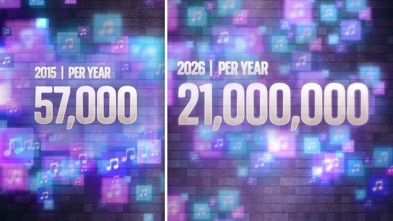 A decade later, Deezer is set to receive 21 million AI tracks a year – and this is a conservative estimate, because the scale of AI music production is growing by the month.