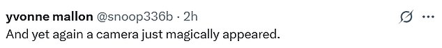 ‘Have they taken this from a security camera!… Desperate times!!,’ another critic wrote, while a third joked: ‘Don’t forget to film it. Don’t forget to film it. Don’t forget to film it.’