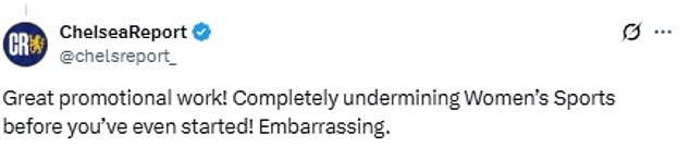 Another said: ‘Great promotional work! Completely undermining women’s sports before you’ve even started! Embarrassing.’