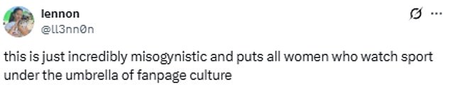 Another said: ‘This is just incredibly misogynistic and puts all women who watch sport under the umbrella of fanpage culture.’