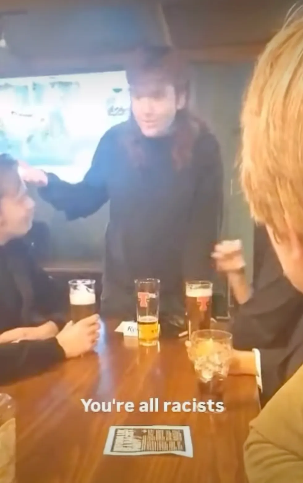 Two women later join the bewildered Reform Society members at the table, one telling them their support for Nigel Farage’s party “is not okay” while another corners them suggesting the majority of “pretty racist” Reform members want to deport non-white Brits.