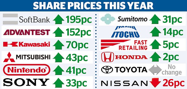 The veteran US fund manager Warren Buffett is a long-standing Japan enthusiast. His Berkshire Hathaway fund has $24billion (£18.3billion) worth of stakes in the sogo shosha trading houses Itochu, Mitsui, Mitsubishi and Marubeni and Sumitomo.