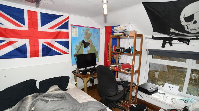 When officers raided the home he shared with his father in a village in Northumberland on 20 February last year, they found his bedroom was adorned with white supremacist flags.