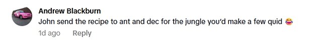‘John send the recipe to Ant and dec for the jungle you’d make a few quid,’ wrote one user on TikTok.