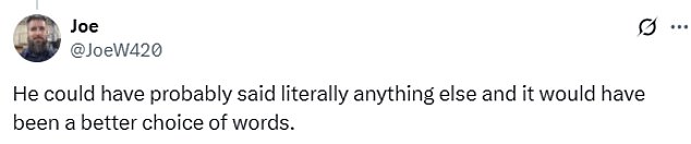 ‘He could have probably said literally anything else and it would have been a better choice of words,’ another wrote on the social media platform on Thursday.