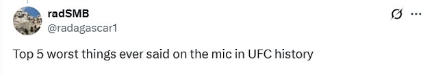 ‘Top 5 worst things ever said on the mic in UFC history,’ one fan said on X.