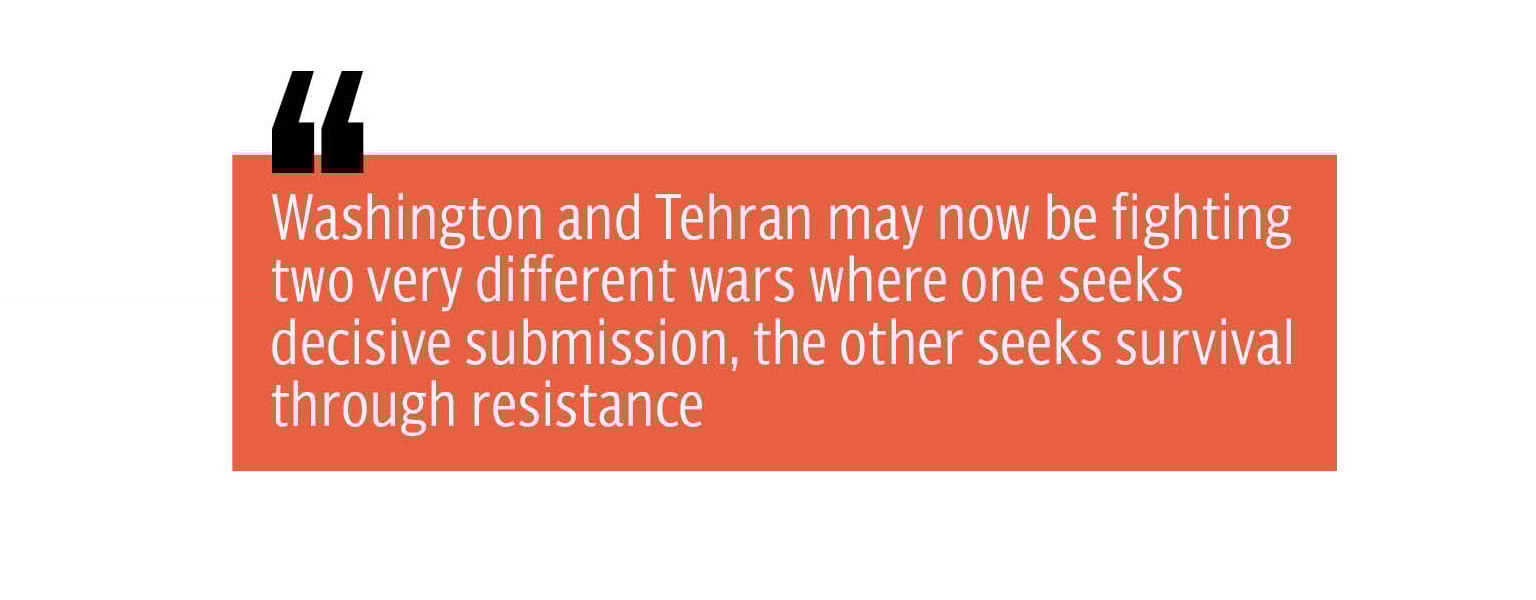 The current situation only goes on to show that Washington and Tehran may now be fighting two very different wars where one seeks decisive submission, the other seeks survival through resistance. And in all of this, the mirage of an easy victory is fading fast for President Trump, both at home and before his Western allies, who weren’t even consulted out of diplomatic courtesy.